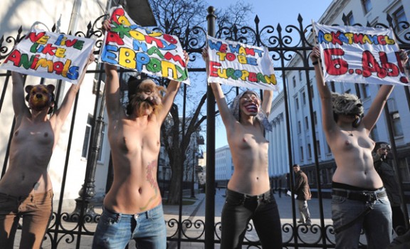Sin embargo, es frecuente encontrar en los medios de comunicación frases como «Un grupo de feministas hizo top-less por la renuncia de Benedicto XVI» o «Mujeres en topless protestan contra Berlusconi en las elecciones italianas», en las que ya se habría podido emplear la adaptación al español toples.